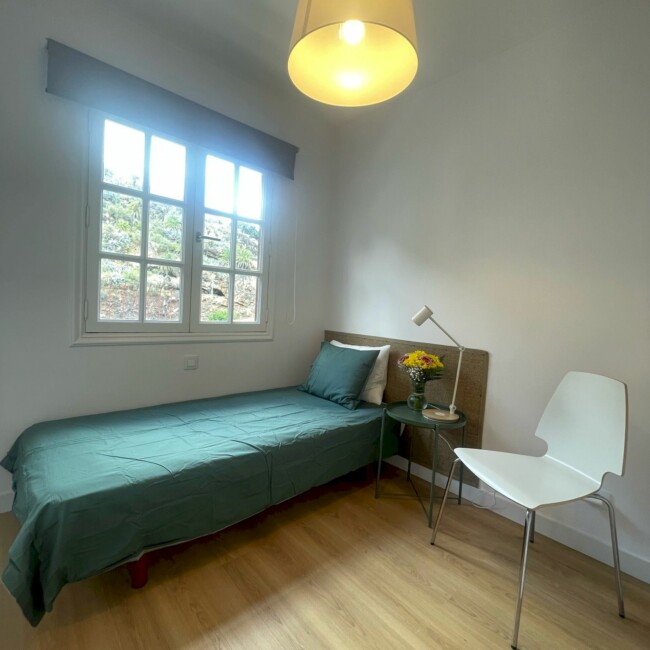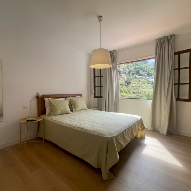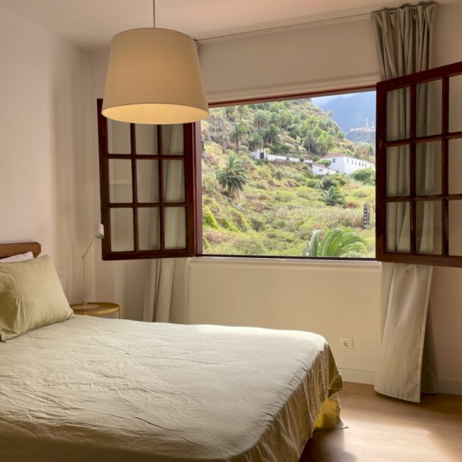 Las habitaciones y el salón son exteriores y disponen de amplias vistas del entorno. La habitación principal ubicada en la esquina noroeste del edificio tiene unas vistas especialmente espectaculares hacia la Quinta Verde y hacia las atractivas laderas del barranco.