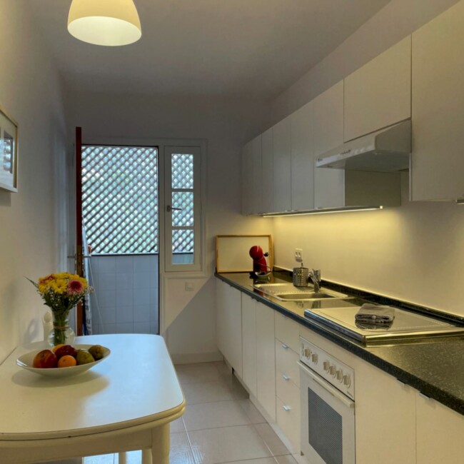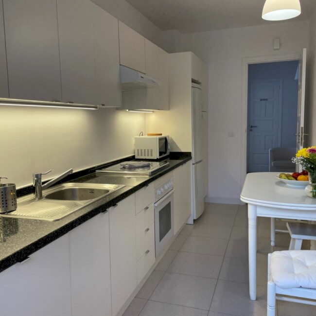 El apartamento dispone de dos dormitorios individuales con un baño compartido y una amplia habitación doble en suite con baño privado y saloncito- vestidor y una amplia cocina completamente equipada, ideal para familias que quieran disfrutar de la isla, pero también para persona que vengan a la isla de La Palma por trabajo.